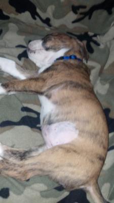 She is learning sit, come and lay very quickly and is a joy to have! Mom was Pitbull and dad was pure GSD. She is already great at using her kennel and loves to take naps with me but has no problem taking one in her kennel and it only took 2 days to kennel train her!