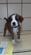 She's very playful and friendly (even with the cat) and curious of our 4 month old son. She loves to cuddle! She whimpers when she needs to go potty and has only had one accident in the week she's been a part of our family.